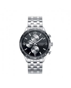 Reloj de Hombre Viceroy Heat cronógrafo de acero con brazalete. La esfera en color negro con los contadores en plateado localizados a las 6, 9 y 12.