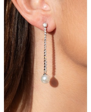 PENDIENTAS DE PLATA FORMADOS POR UN CARRIL DE CIRCONITAS ACABADOS EN PERLA DE AGUA DULCE