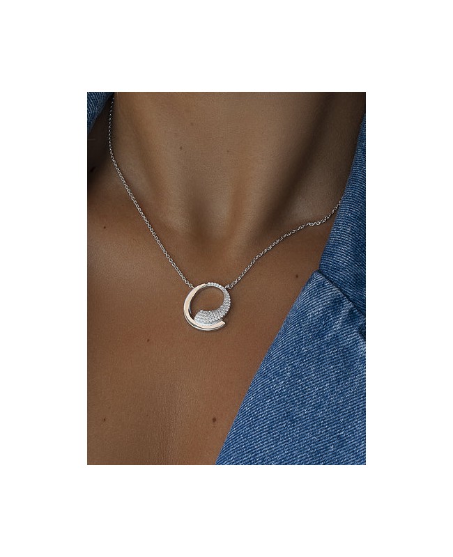 Elegante collar de plata con diseño circular y circonitas brillantes. Tamaño: 21,3 × 21,3 × 5 mm. Largo cadena 420mm