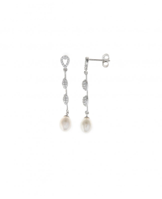 PENDIENTES PLATA RODIO OVALOS CIRCONITAS BLANCAS PERLA DE AGUA DULCE