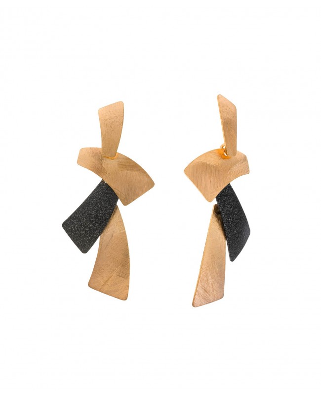 PENDIENTES PLATA CHAPADO DORADO RECTANGULOS UNO ESMALTE NEGRO DIAMANTADO. LARGO 4CM