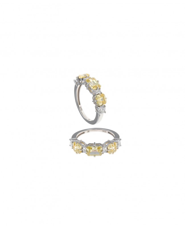 SORTIJA PLATA RODIO CIRCONITA AMARILLA BAGUET Y CUADRADA CIRCONITA BLANCA BRILLANTE