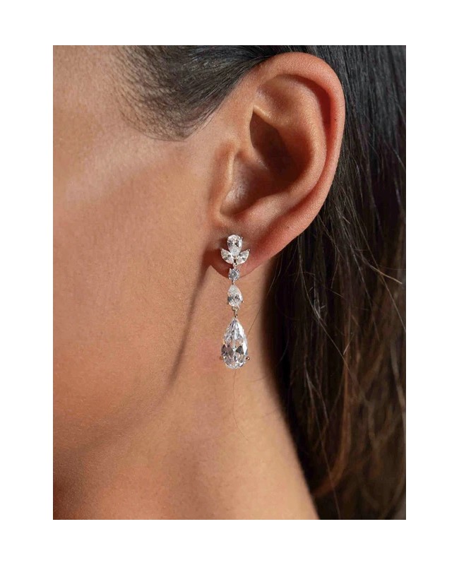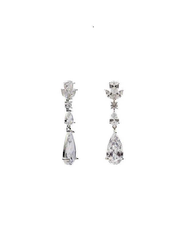 PENDIENTES PLATA DE NOVIA CON CIRCONITAS TALLA MARQUESA Y PERA.