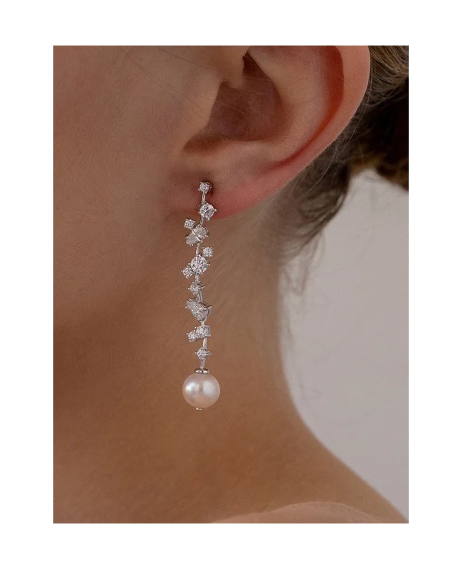 PENDIENTES DE PLATA LAGOS ENGALANADOS CON CIRCONITAS Y PERLA