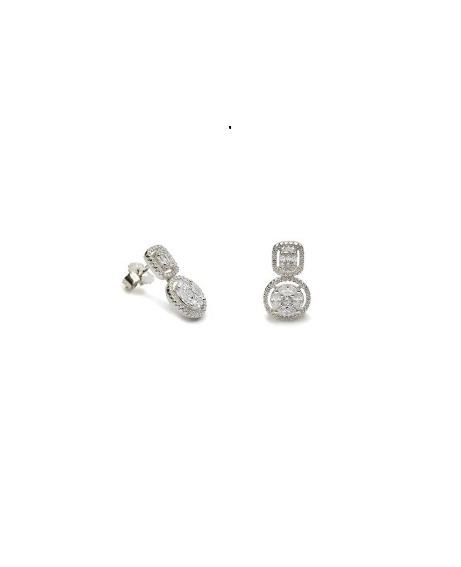 PENDIENTES DE PLATA DOBLES CON CIRCONITAS EN FORMA RECTANGULAR Y REDONDA