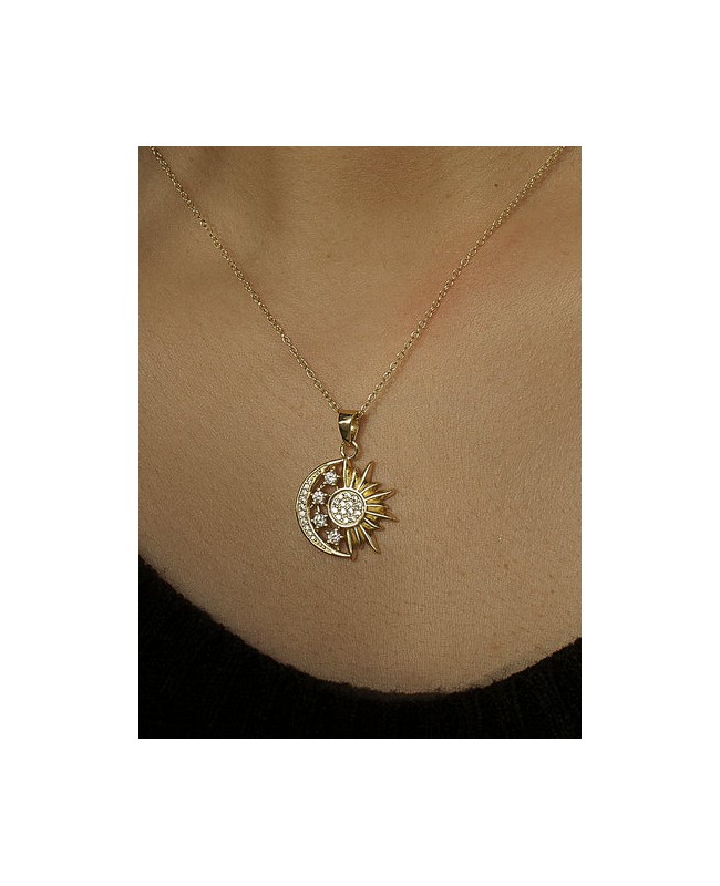 COLLAR PLATA MEDALLA DORADA CON DISEÑO DE SOL Y LUNA