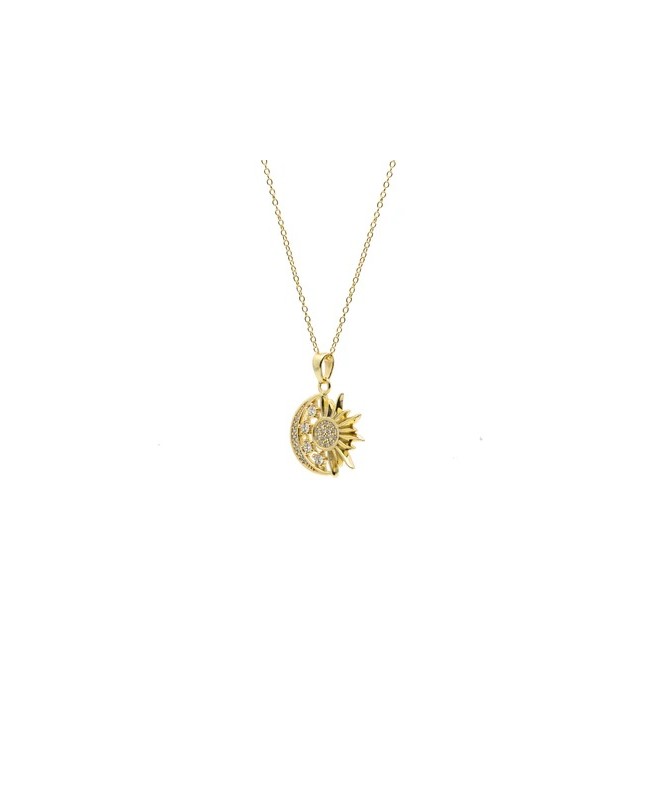 COLLAR PLATA MEDALLA DORADA CON DISEÑO DE SOL Y LUNA
