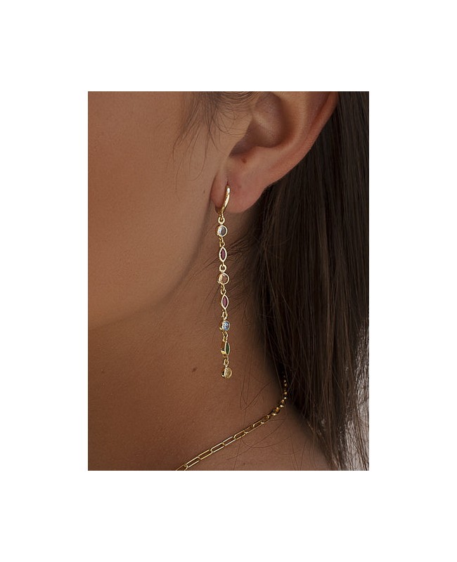 PENDIENTES DE PLATA BAÑADA EN ORO CON PIEDRAS EN TONOS AZULES Y ROSADOS