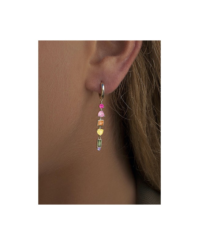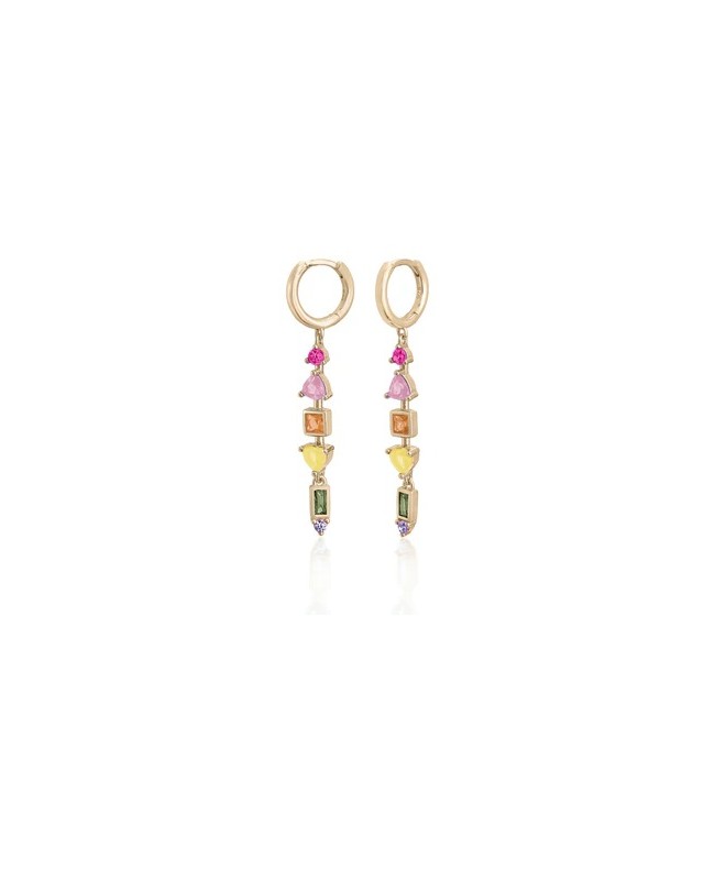 PENDIENTES CON COLGANTES DE PLATA BAÑADA EN ORO ESTILO ARO CON GEMAS MULTICOLOR COLGANDO