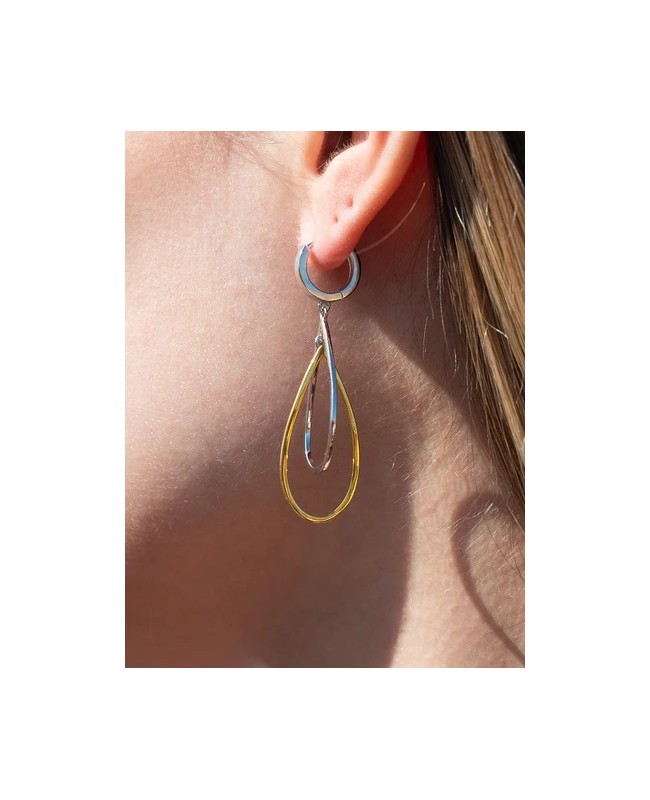 PENDIENTES PLATA BICOLOR. FORMADA POR UNA CRIOLLA QUE SUJETA DOS LAGRIMAS UNA EN PLATA ISA Y LA OTRA EN PLATA BAÑADA EN ORO