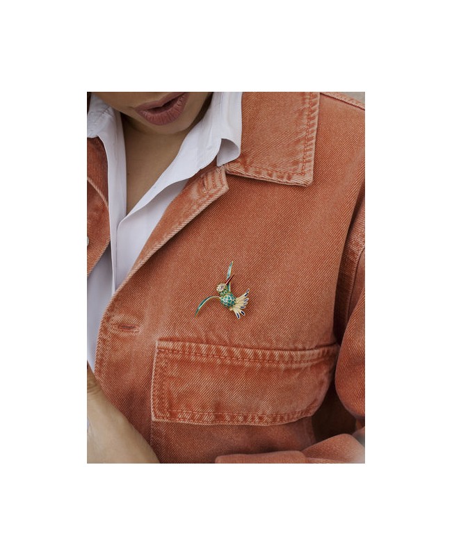 BROCHE CON CIRCONITAS Y ESMALTE CON FORMA PAJARO