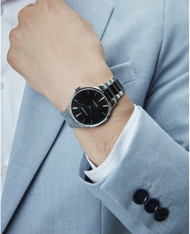 Reloj caja de acero 5 Atm, brazalete de acero, movimiento cuarzo Suizo, Swiss made