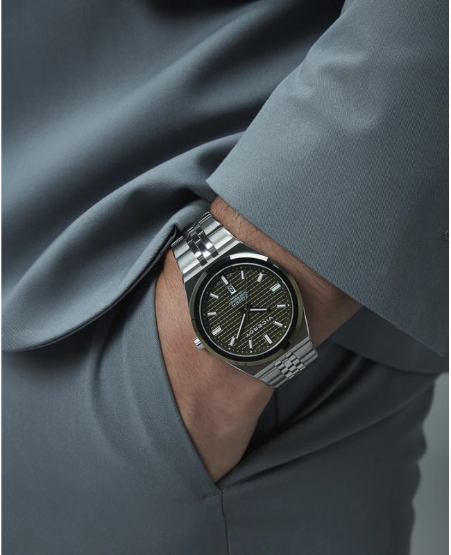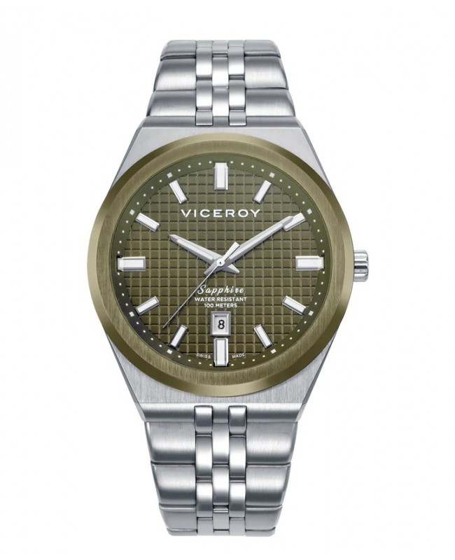 Reloj caja bitono de acero e Ip verde 10 Atm, brazalete de acero, movimiento cuarzo Suizo, Swiss made