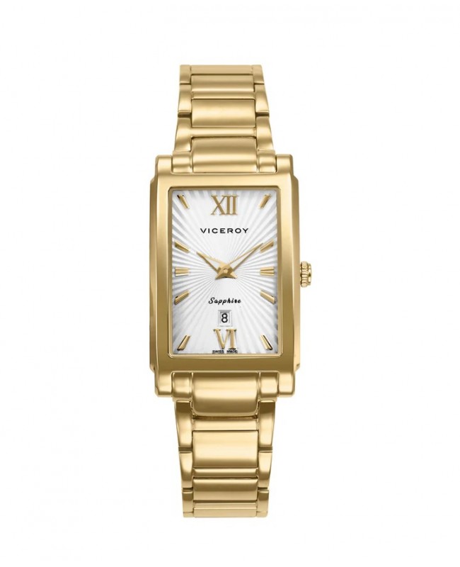 Reloj caja de acero Ip dorado 5 Atm, brazalete de acero Ip dorado, movimiento cuarzo Suizo, Swiss made