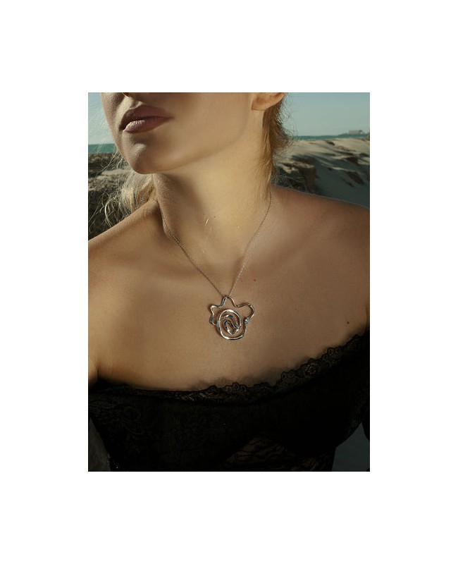 COLLAR DE PLATA EN ESPIRAL CON PIEDRA COLOR AZUL