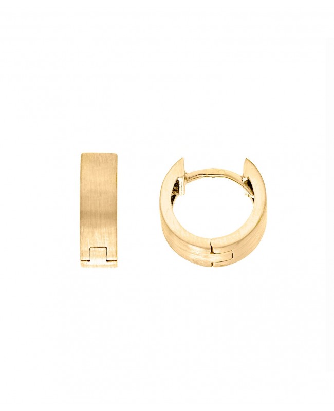 Pendientes Salvatore fabricados en plata bañada en oro. Aro con cierre de criolla con acabado mate. Medida 1 cm