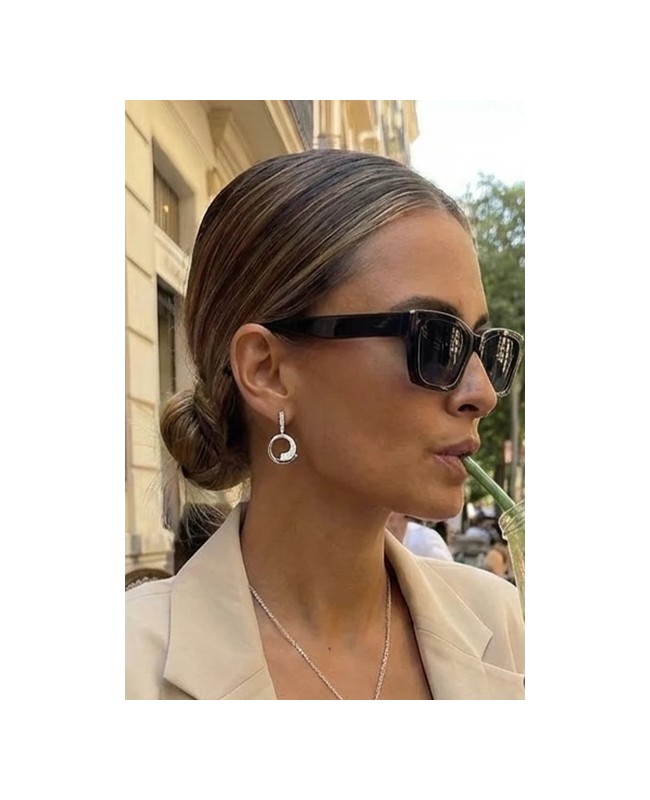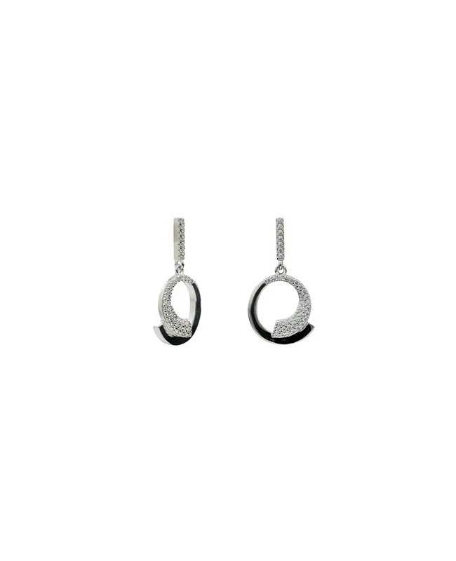 Pendientes largos de plata para mujer con circonitas engastadas en elegante forma circular.