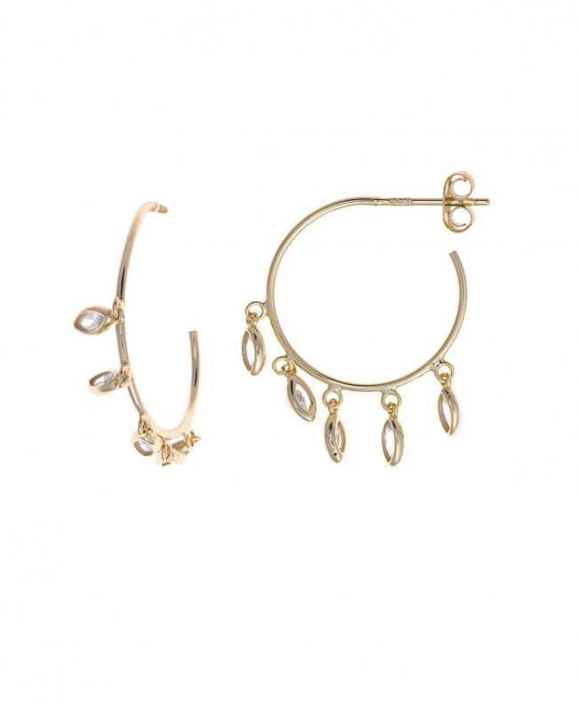 Pendiente plata Chapado dorado aro circonitas blancas marquesas
