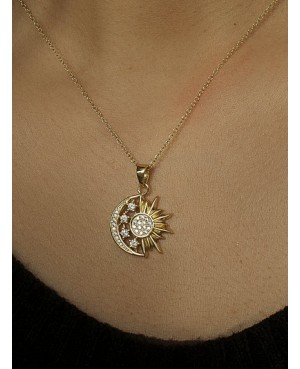 COLLAR PLATA MEDALLA DORADA CON DISEÑO DE SOL Y LUNA